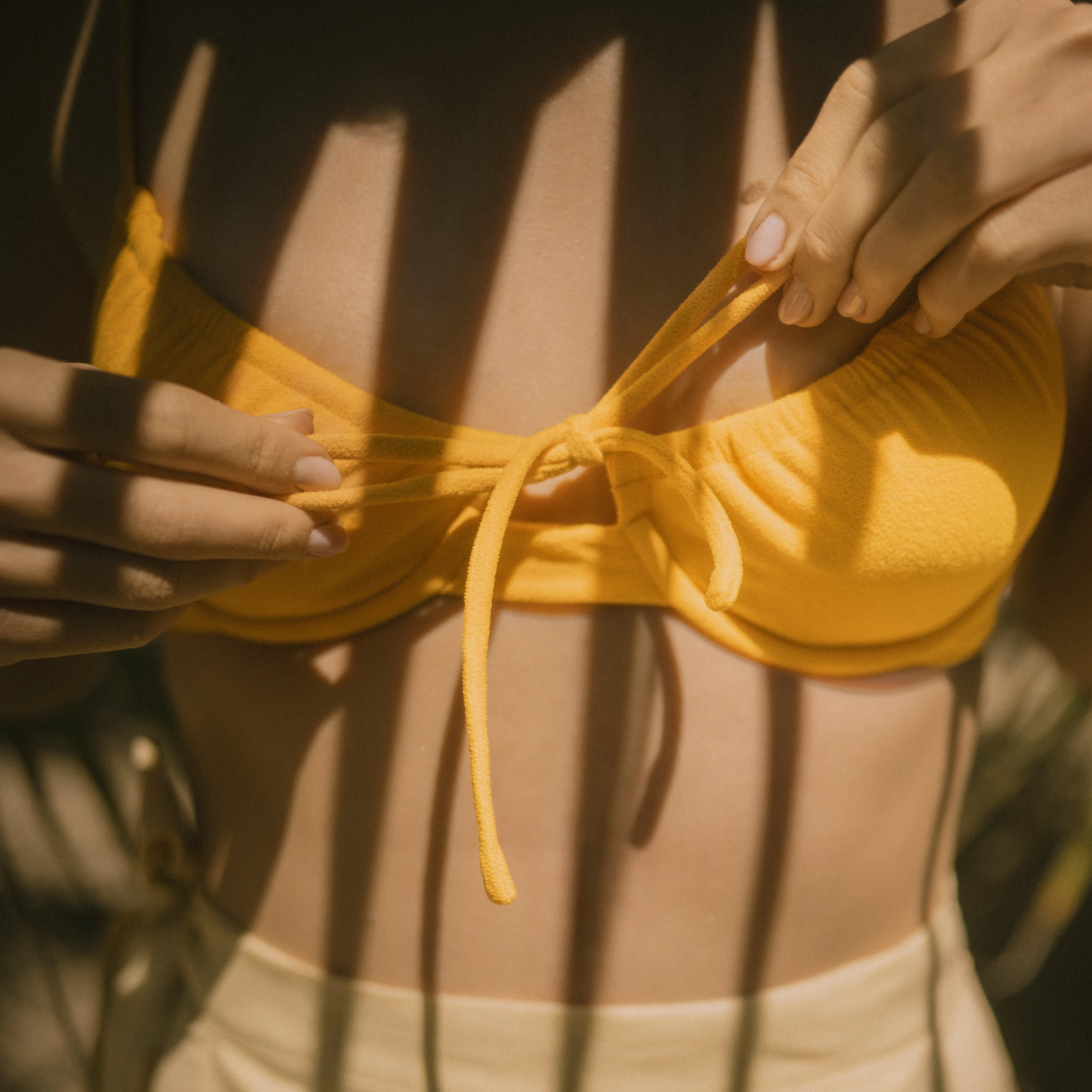 Τα κομμάτια παράγονται σε μικρές, προσεκτικά ελεγχόμενες ποσότητες και δημιουργούνται με στόχο τη διάρκεια, ώστε να διατηρούν το σχήμα και το χρώμα τους στο χρόνο. Η βιωσιμότητα ενσωματώνεται μέσα από τη χρήση αναγεννημένων ινών, όπως το ECONYL® και το ανακυκλωμένο νάϋλον. Παράλληλα, η αισθητική παραμένει βασικη προτεραιότητα: σύγχρονες, κολακευτικές γραμμές, συχνά διπλής όψης, που προσφέρουν ευελιξία χωρίς να θυσιάζουν την καθαρότητα και το στυλ του σχεδιασμού.